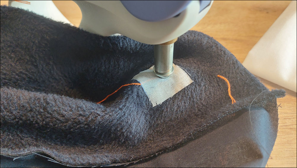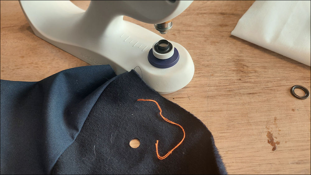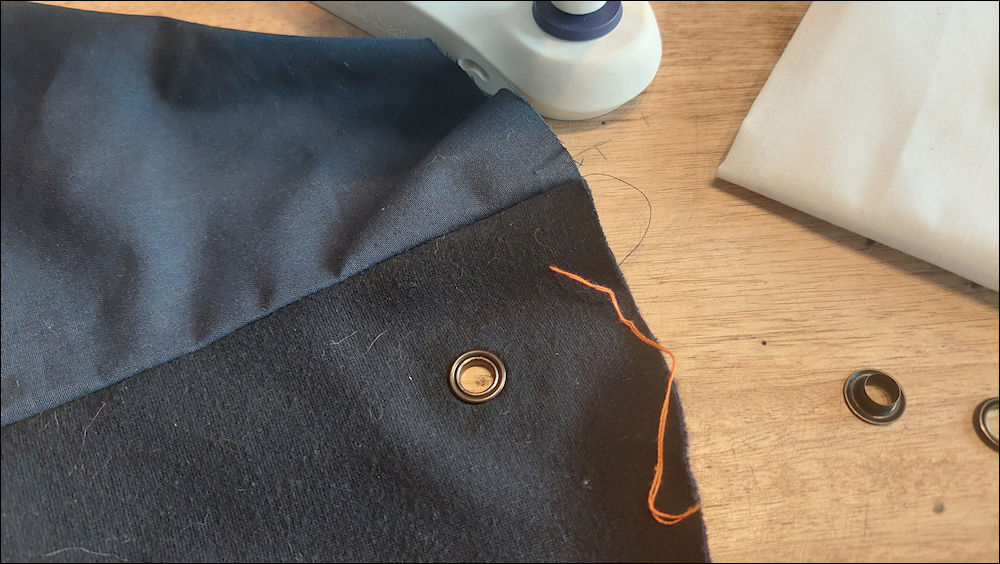 Om te verstevigingen Vlieseline G700 of plakkatoen genaamd. Ik heb de zeilringen 8 mm (Prym) genomen voor een heren hoodie.