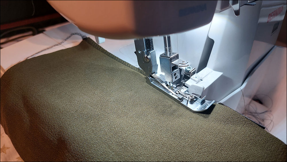 Dit is de GOEDE kant van de stof. We gaan nu met de naaimachine met de blindzoomvoet met een rechte steek op de naad stikken.
