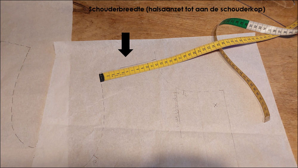 - de schouderbreedte (van halsaanzet tot aan de schouderkop)