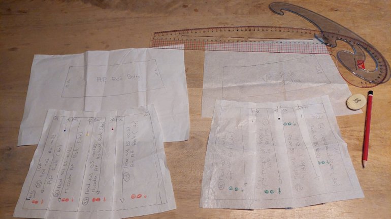 Als je een patroon hebt met heel wat patroondelen bijvoorbeeld bij een trenchcoat, zie je door het bos de bomen niet meer. Om dit gemakkelijk van elkaar te onderscheiden, kan men de patroondelen met kleuren onder verdelen. Bijvoorbeeld: VP in het groen, AP in het rood, mouwen in het geel, beleg in het paars, enz…. je duidt dit aan met bijvoorbeeld een stip. Dit kan vooral handig zijn voor mensen die starten met naaien. En leg elk kleur bij elkaar, zo zie je meteen welk patroon waar hoort te zijn.