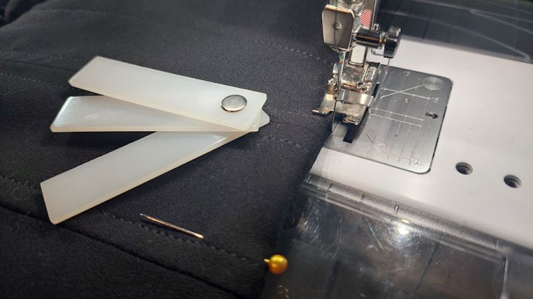 Zijn de stoflagen te dik, dan kan je gebruik maken van nivelleerplaatjes, deze zet je achter naald van de naaivoet om de hoogte te compenseren. Dan staat de voet met de dikke stoflaag op gelijke hoogte.