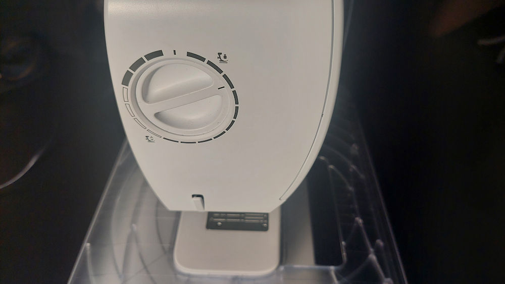 Voor de beste resultaten, verhoog je de druk voor dunne stoffen bijvoorbeeld satijn, chiffon. En verlaag je de druk voor dikkere stoffen, bijvoorbeeld sweatstof. Je kan de druk regelen met een draaiknop.