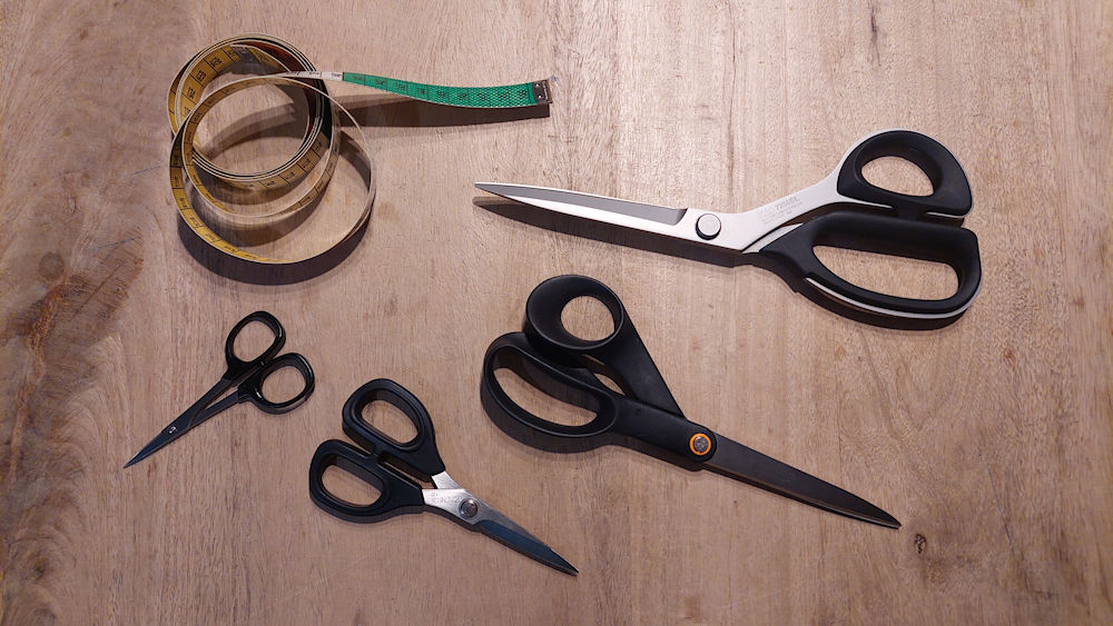 Een zeer goede stofschaar heb je nodig, ze zijn vrij prijzig maar ze zijn het waard. Zeker niet besparen op de prijs. Kai, prym, mediac zijn de betere merken. Een goede schaar herken je aan de bout die je kan regelen. En ze moet met 1 hand goed en vlot open gaan.
