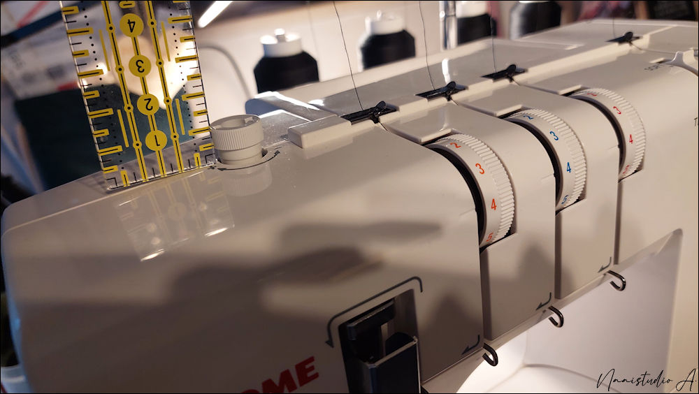 Voor heel dikke stoffen, moet je de druk verhogen, dan draai je in de richting van de “+”, dus met de richting van de klok mee.