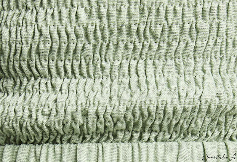 Wat is smocken? Dit is een naaitechniek met de naaimachine waarbij de stof begint te rimpelen (zie foto). Je gebruikt hiervoor elastisch garen opgelet geen Seraflex, het is elastisch garen dat in verschillende kleuren bestaat bijvoorbeeld van Prym (zwart, wit, grijs, rood en beige), je hebt het ook van andere merken in talrijke kleuren. Dit garen wordt handmatig op de spoel gewonden. Je gebruikt een rechte steek, steeklengte: 3 à 4.