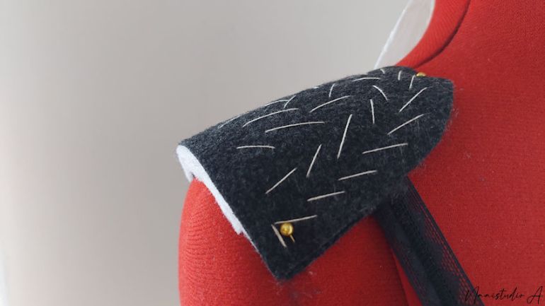 Deze schoudervullingen zijn ook gepikeerd. De onderkant zijn dan kleine steken, en worden op deze manier genaaid. Een pittig werkje.