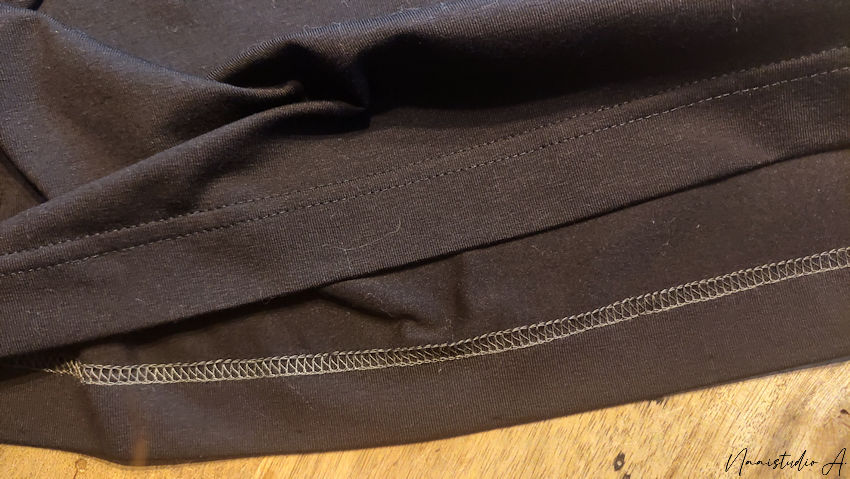 Heb je geen coverlock? Dan kan je deze ook zeer mooi afwerken met een tweelingnaald. Deze steek is dan ook rekbaar. Je kan hierbij gewoon allesnaaigaren gebruiken.