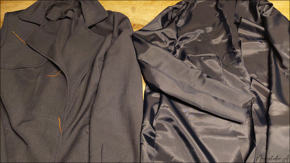 Mijn trenchcoat: je moet dus 2 keer je jas maken, 1 met de goede stof en 1 met voering (juist rekening houden met het beleg die moet je dus zoals eerder gezegd aftrekken van het patroon)