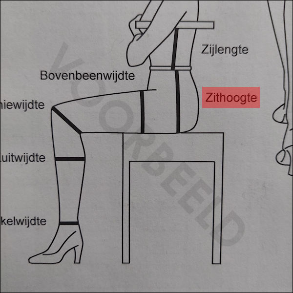 Wat is de zithoogte? Dit is de afstand vanaf de taille tot aan de stoel waarop je zit, met een rechte rug.
