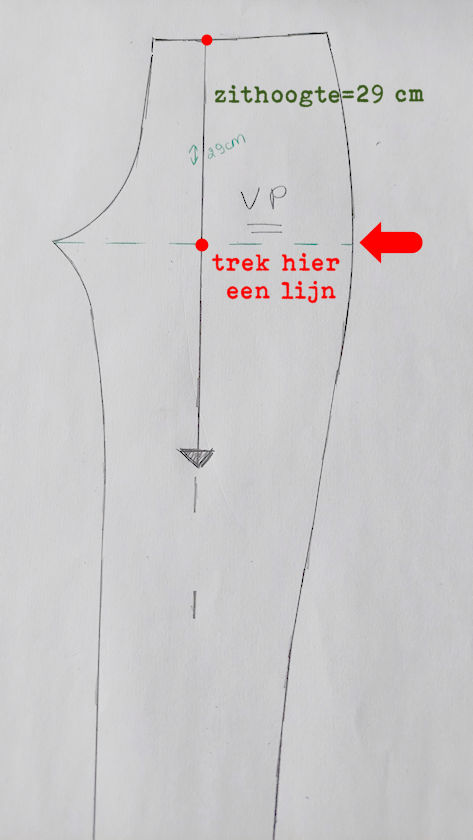 Bij voorkeur eerst een proefmodel maken, stel er zijn teveel plooien aan het kruis, dan is de kruislengte te kort/te lang, ook eens zitten of de broek niet teveel naar beneden trekt.