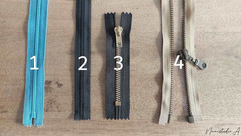 - Metalen ritsen (zie nummer 3 en 4), deze tanden haken in elkaar en hebben een stoere uitstraling en ook heel stevig. Voor jeans, tassen bijvoorbeeld.