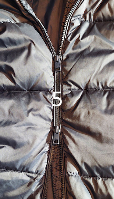 - Dubbele deelbare rits: Foto nr. 5. Deze hebben 2 runners (ritswagentje) en kunnen zowel van boven als onderaan open en dicht gaan, de 2 runners komen dus elkaar tegen in het midden van de rits. Deze zie je vaak bij lange sportievere jassen.