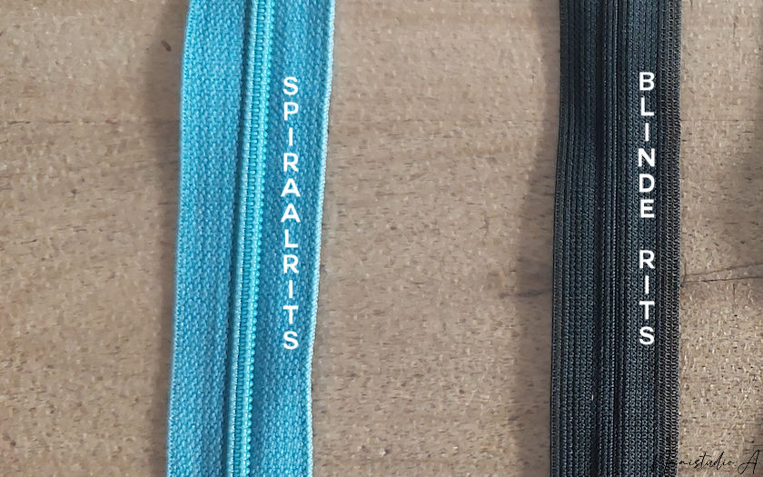 Het verschil tussen spiraal rits en een blinde rits. Bij de blinde rits zitten de tandjes achteraan. (Foto: klik om groter te maken)