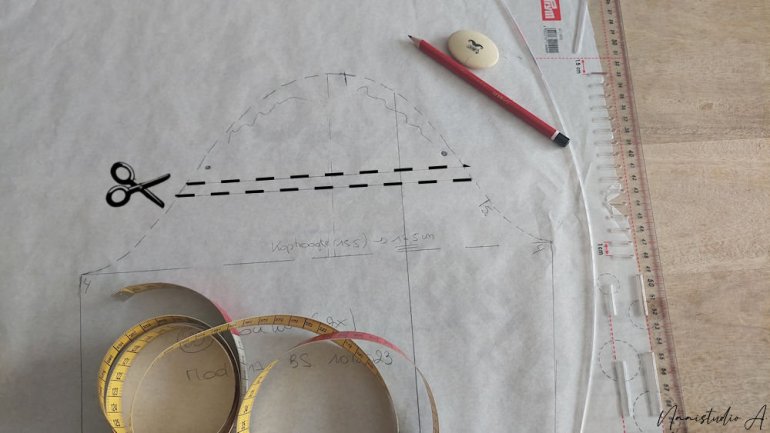 Wil je de kophoogte kleiner maken, dan doe je net omgekeerd, de patroondelen over elkaar heen schuiven. Zie onderstaand instructiefilmpje, daarin staat uitgelegd hoe je dit aanpast: