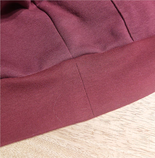 Je neemt hierbij ook boordstof (voor zoom onderkant, en mouwboord), dit is een rondgebreide stof. De lengte hangt af van de rekbaarheid van de stof. De vuistregel is 85% van de omtrek van de sweater/hoodie/t-shirt. (Voor de halsboord van een t-shirt neem je een strookje stof van de gebruikte stof zelf. Van gewone tricot-stof bijvoorbeeld.)