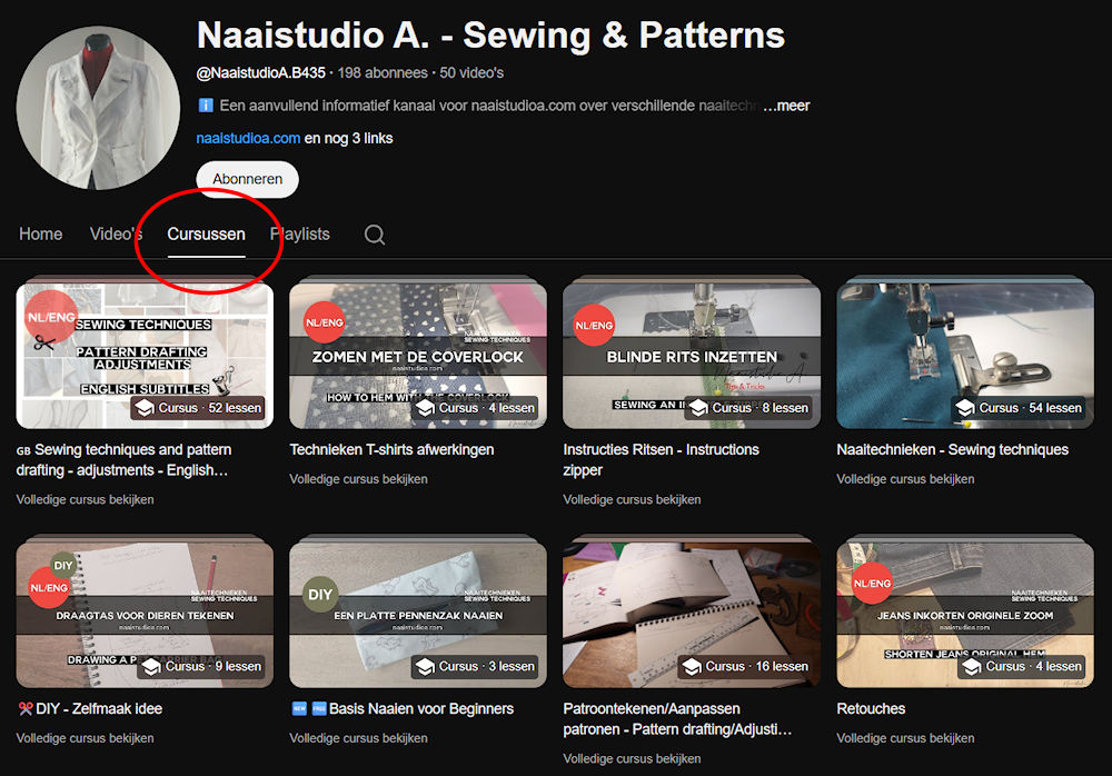 Sinds kort is er een tabblad “cursussen” toegevoegd op het YouTube kanaal van Naaistudio A. Je kan het hier https://www.youtube.com/@NaaistudioA.B435 vinden. Het kanaal voldoet aan de voorwaarden en vereisten van de community richtlijnen. De vereisten zijn als volgt: