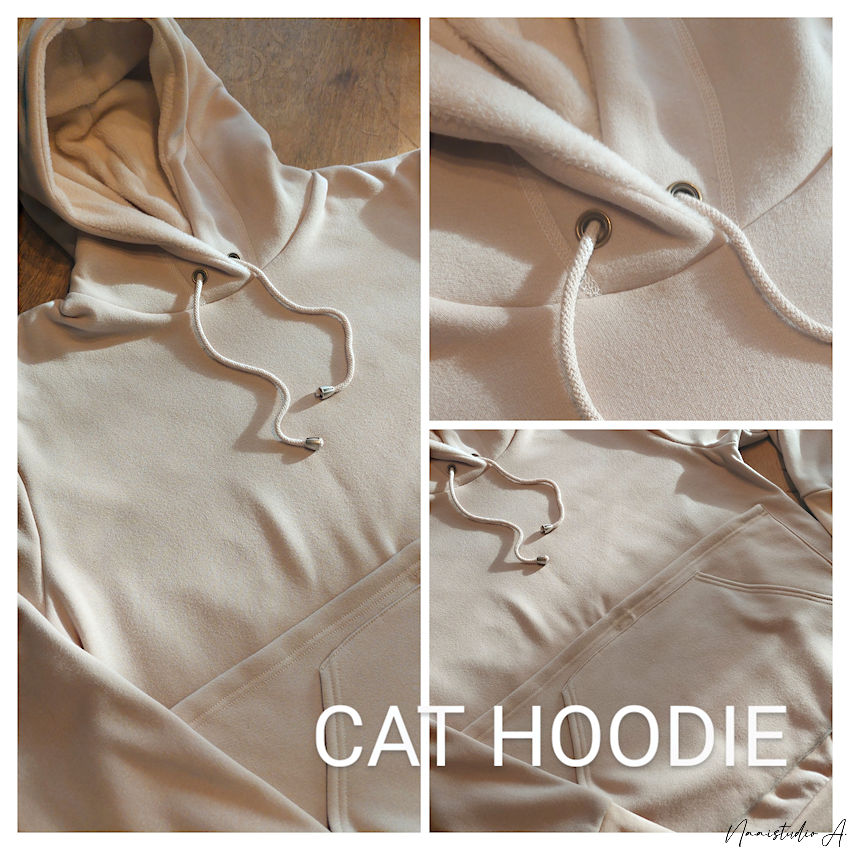 Mix & match hoodie, stof: Alpenfleece/Kaki. Capuchon gevoerd met nekafwerking. Tailleboord met de coverlock doorgestikt. Nog meer sewing projects: