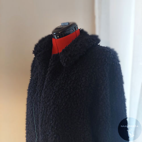 Vandaag de binnenvoering aan elkaar gestikt. De volgende keer gaan we de jas met de voering aan elkaar naaien. Ook de zomen moeten we even vast zetten met de hand aan de binnenvoering, zodat bij het aantrekken van de jas, dat we de zoom niet helemaal naar buiten duwen.